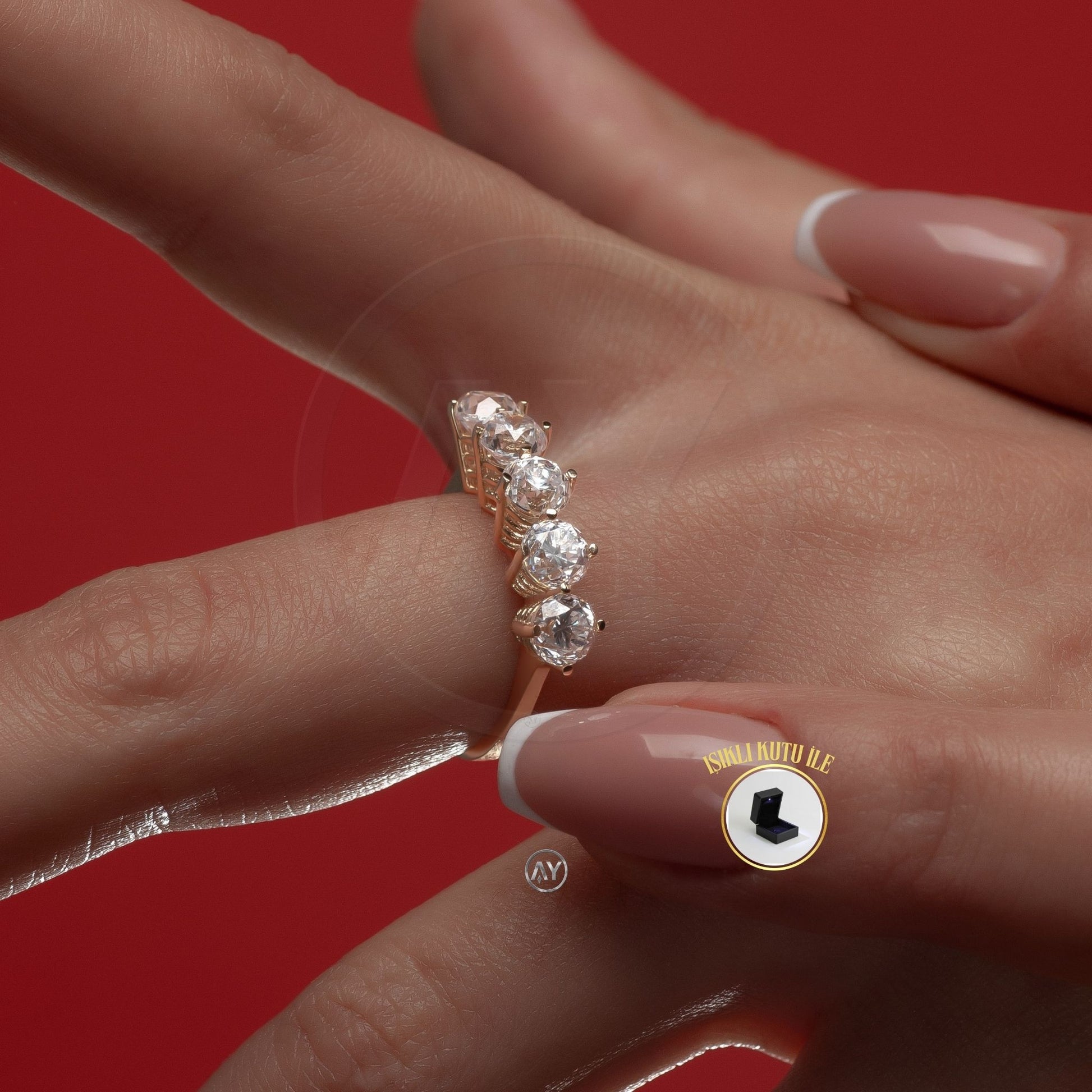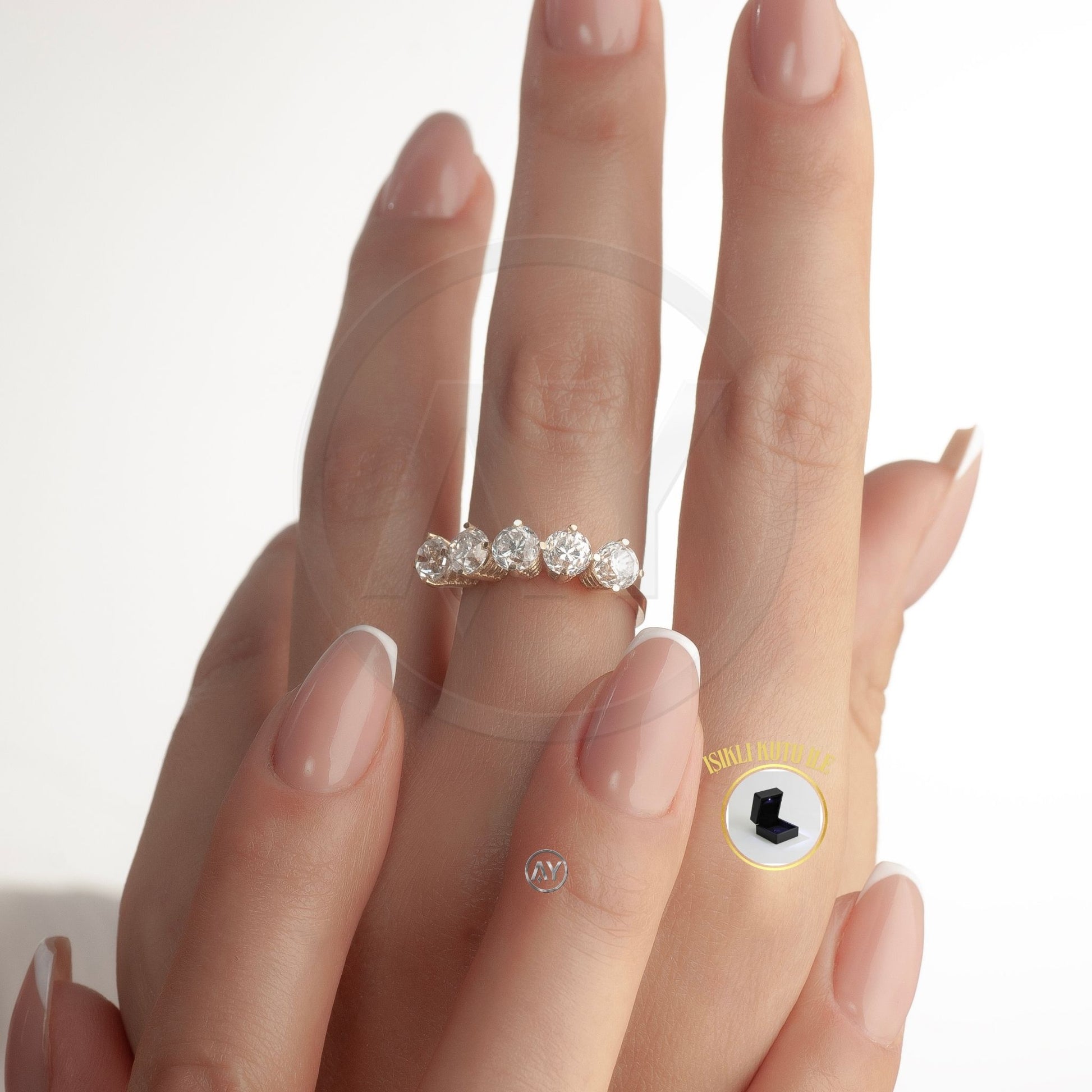 14 Ayar Altın Yüzük – 3.40 Gr. | Sarı Altın Zirkon Beştaş Yüzük, Işıklı Kutulu & Garanti Belgeli & Karton Çantalı