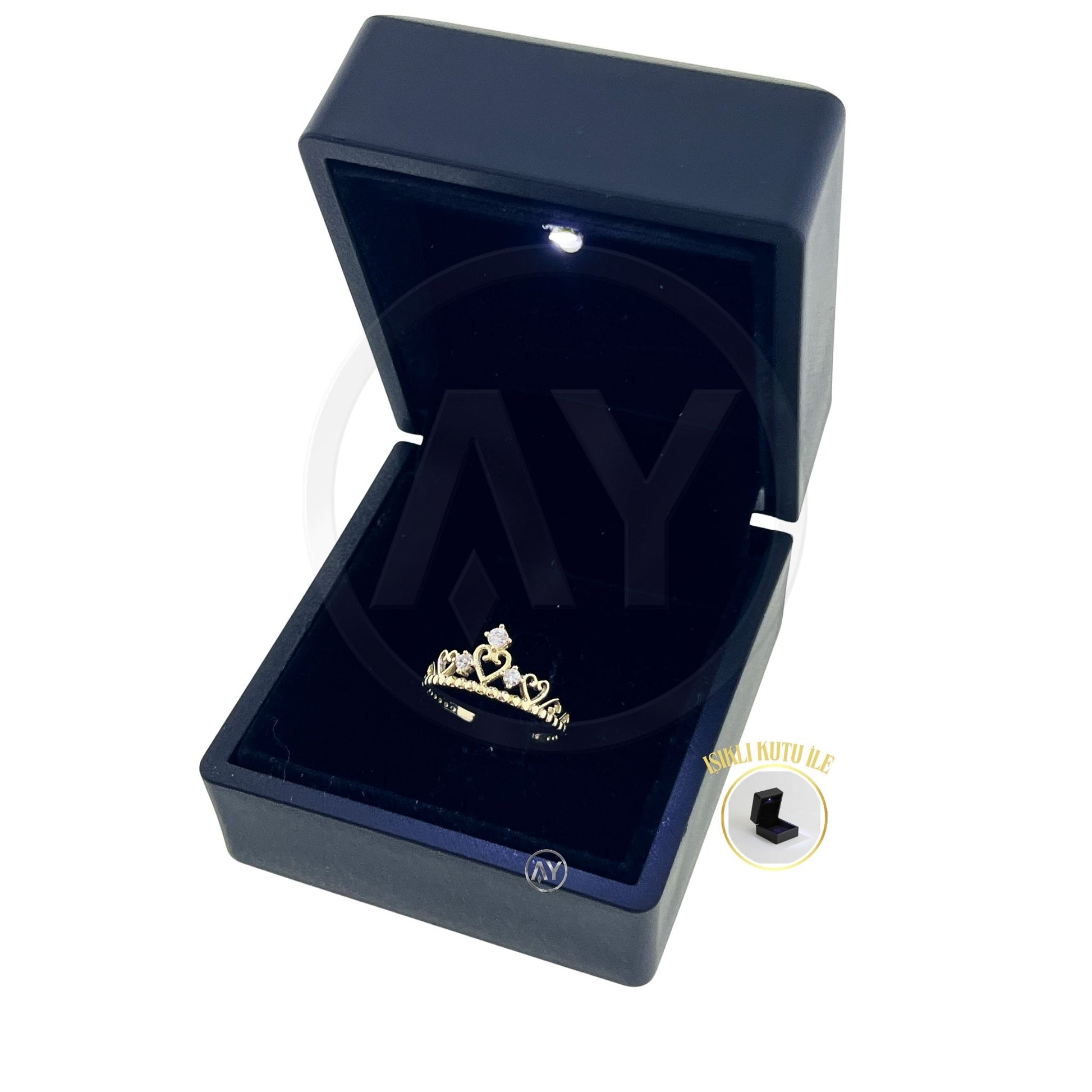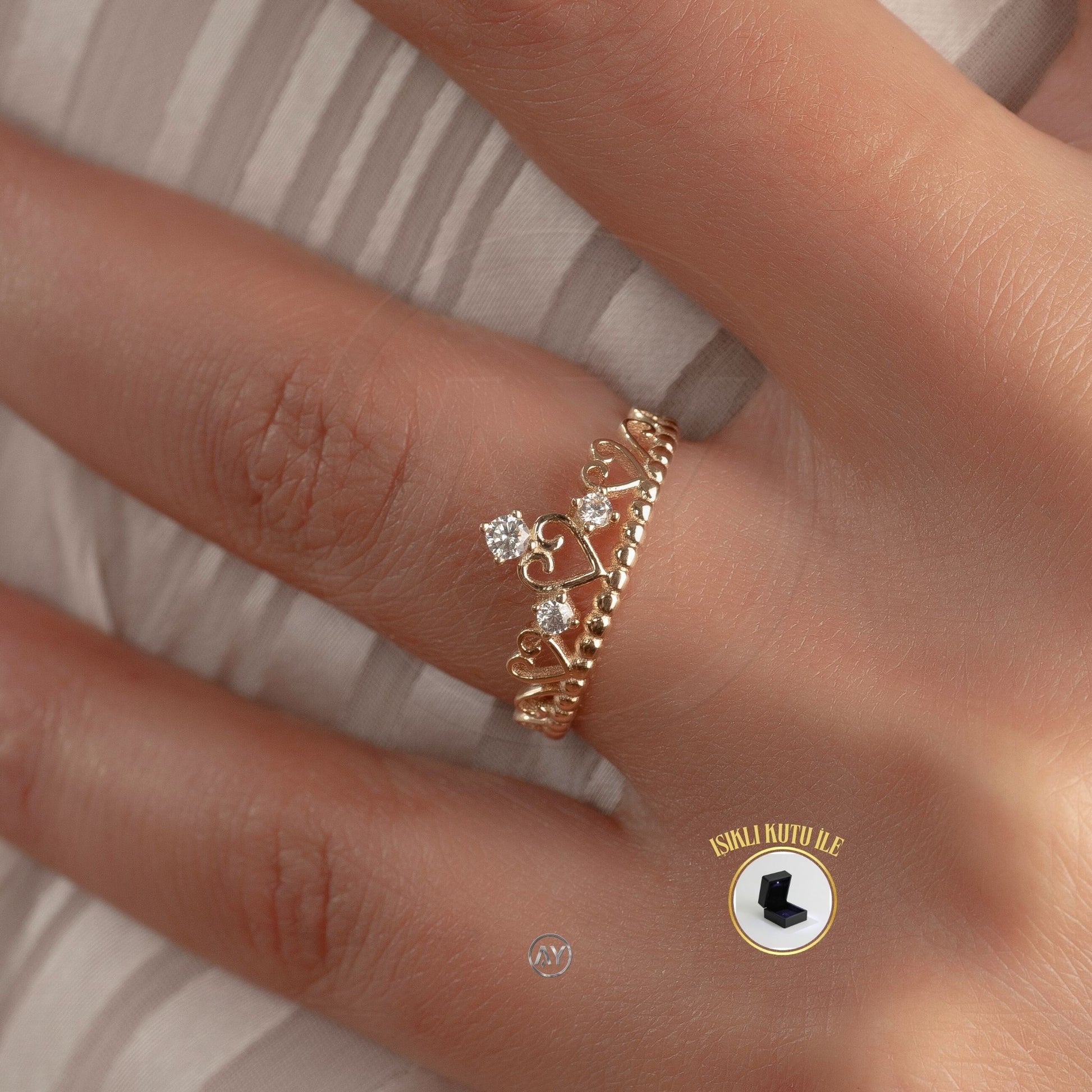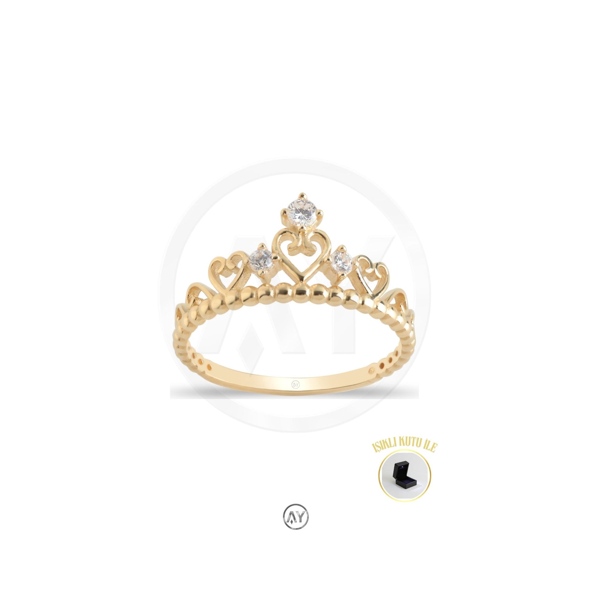 14 Ayar Altın Yüzük – 1.85 Gr. | Prenses Tacı Çıtır Yüzük, Işıklı Kutulu & Garanti Belgeli & Karton Çantalı