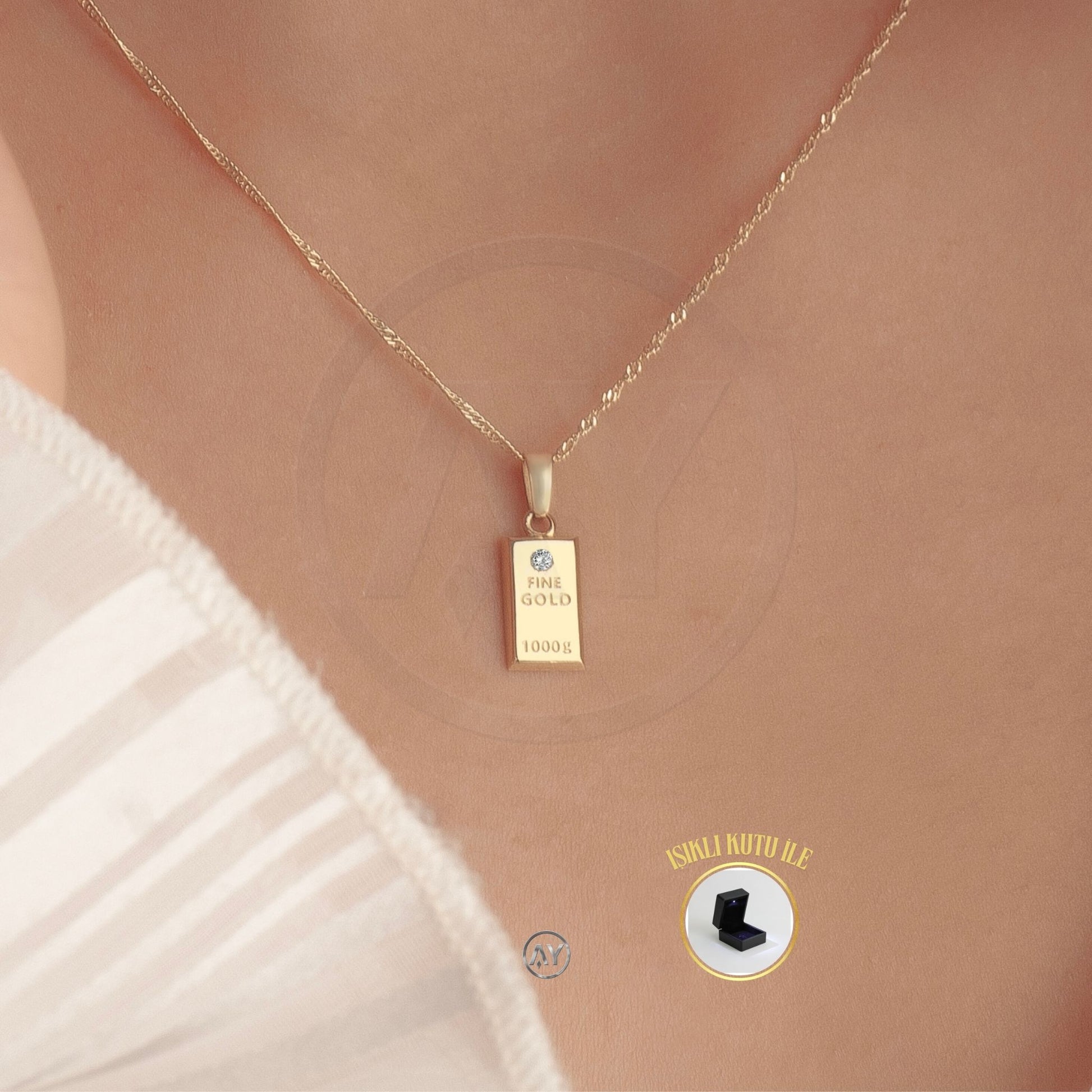 Ürün Özellikleri: 14 Ayar Altın, Singapur Zincirli Külçe Kolye, Ağırlık: 2.25 gr, ışıklı özel mücevher kutusu, garanti sertifikalı ve güvenli gönderim.