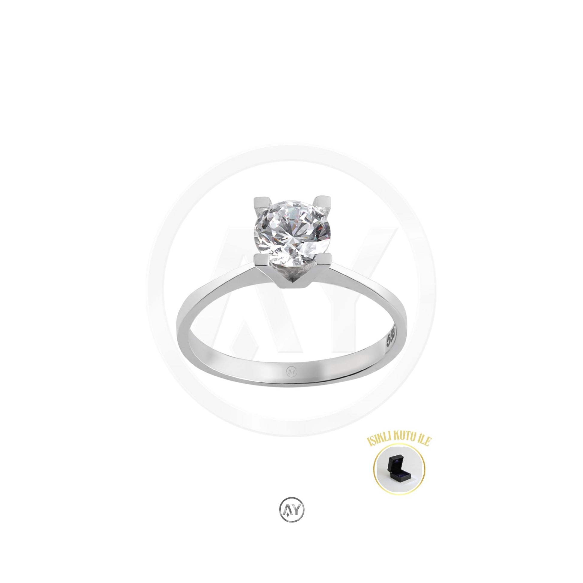 14 Ayar Altın Yüzük – 2.0 Gr. | Takoz Tırnaklı Beyaz Tektaş, Işıklı Kutulu & Garanti Belgeli & Karton Çantalı