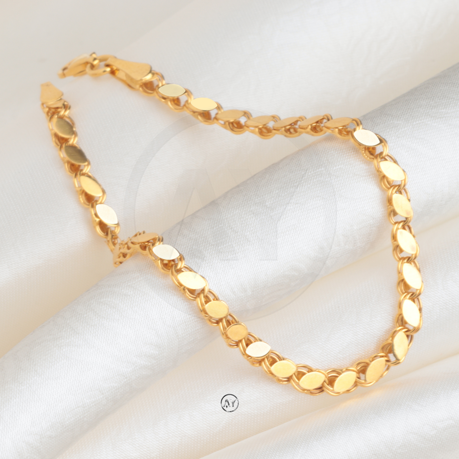 Zarif ve şık tasarımıyla günlük kullanıma uygun 14 ayar altın pullu bileklik. İnce işçiliği ve parlak pullu yapısıyla bileğinize değer katan bu özel tasarım, modern ve klasik çizgileri bir araya getirir.